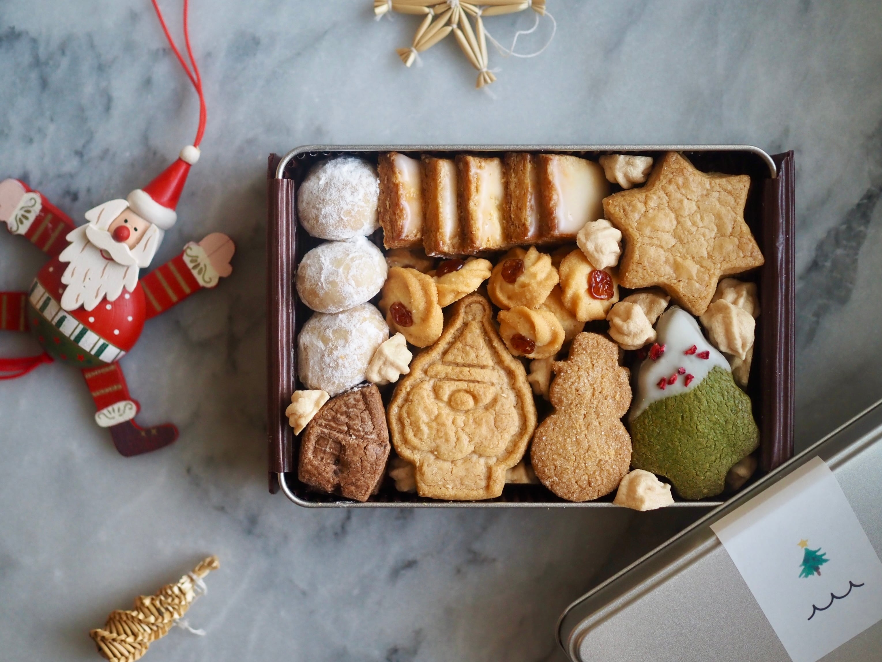 ジンジャーサンタサブレを中心に、賑やかなクリスマスカラー溢れるクッキー達をぎゅっと楽しく詰め合わせました♪